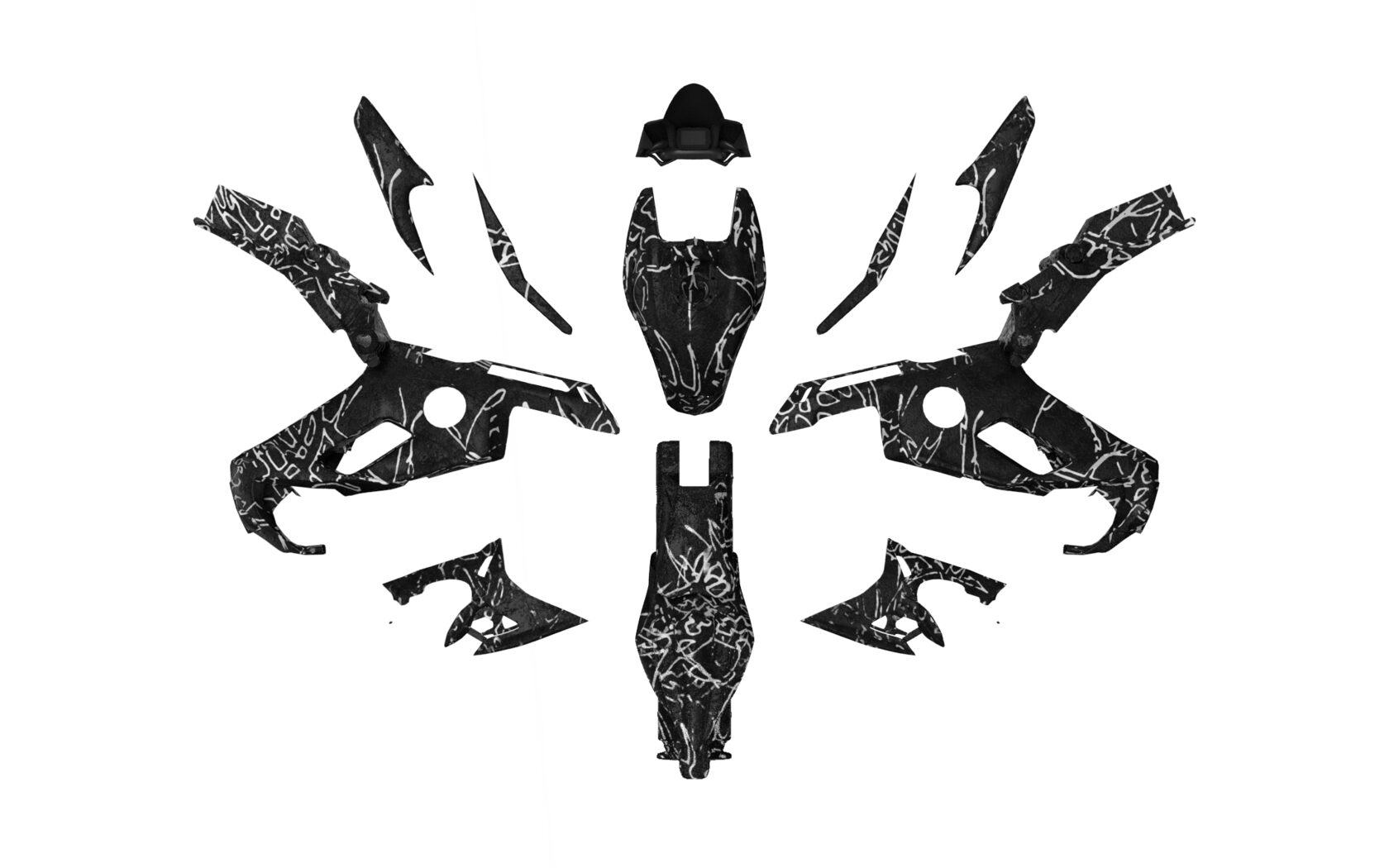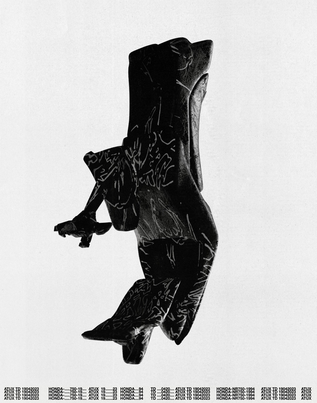 I looked for the design of the pattern itself to fit the spectrum of keywords in ATUX TD (P1S05). So among all the ideas I came up with at that time, the scratches from the motorcycle's interaction with asphalt were the best option. I also interpreted them in a more stylistic way to make the design look less destructive. For me, it was also important to present the final design in a way that would be close to the look you see in old motorcycle magazines, but at the same time have a touch of authentic art